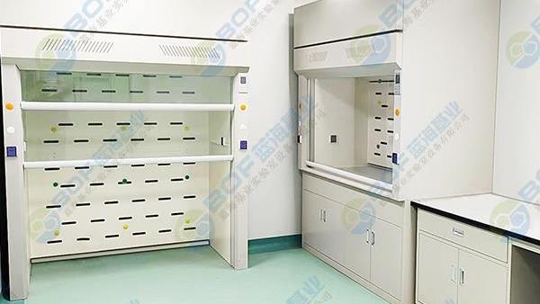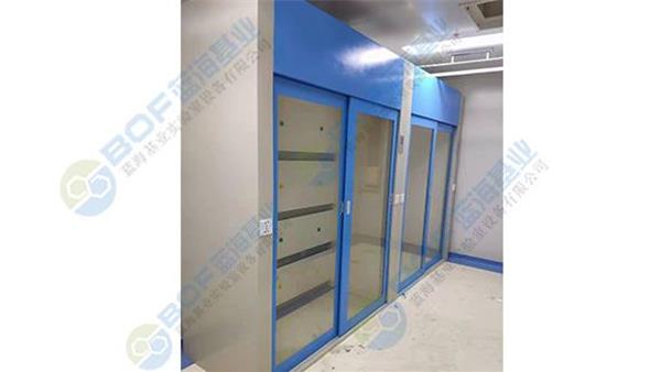 A、上部排氣柜:采用頂吸式抽氣管道,內(nèi)部分三段式排風(fēng)設(shè)計(jì),以抽掉不同比重的各類有毒氣體